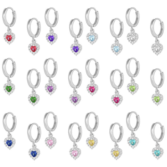 Girls 14K White Gold Birthstone Dangling Heart Huggie Earrings