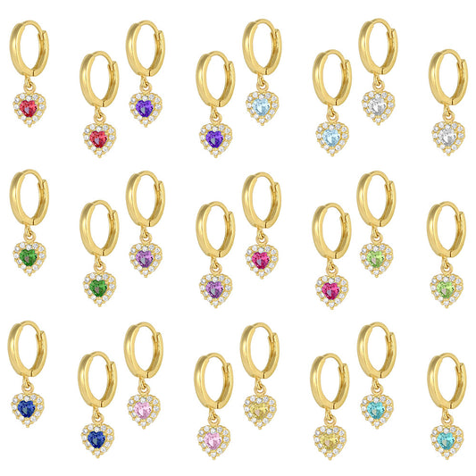 Girls 14K Yellow Gold Birthstone Dangling Heart Huggie Earrings