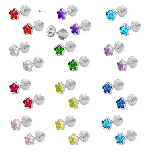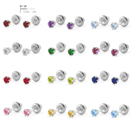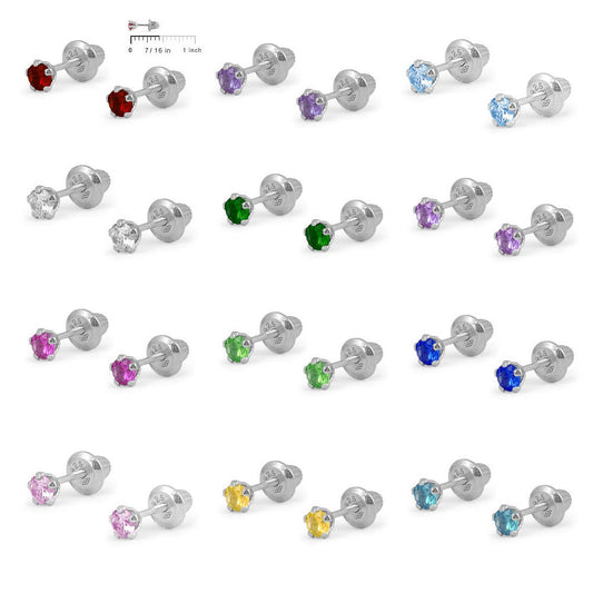 Children Sterling Silver Birthstone Screw Back Earrings For Girls