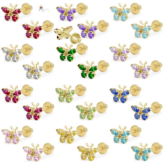 Girls 14K Yellow Gold Birthstone Butterfly Screw Back Earrings