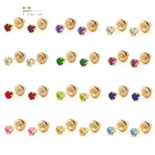 Girl's 14K Yellow Gold Genuine Birthstone Screw Back Stud Earrings