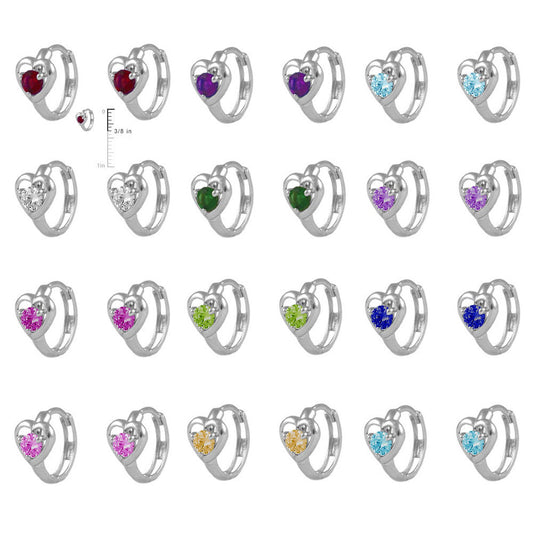Baby And Toddler 14K White Gold Heart Shaped Birthstone Hoop Earrings