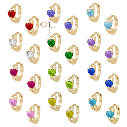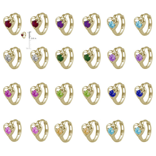 Baby And Toddler 14K Yellow Gold Heart Shaped Birthstone Hoop Earrings