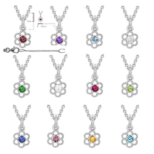 Girls Sterling Silver 12-Month Birthstone Flower Necklace (14, 15 in)