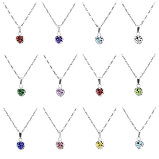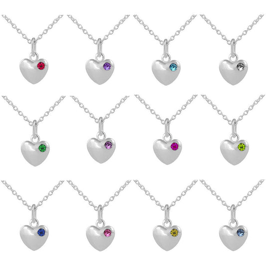 12-18 Inches Children Or Teen Girls Silver Birthstone Heart Necklace