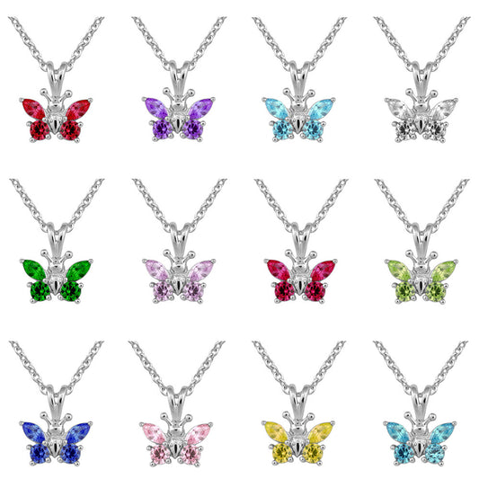 Girl's Sterling Silver CZ Birthstone Butterfly Necklace (15 in)
