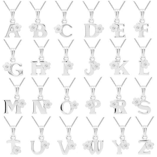 Girls Jewelry - Silver Diamond Initial Flower Pendant Necklace (14-16 In)