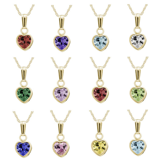 13 In Little Girl's 14K Yellow Gold Simulated Birthstone Heart Pendant Necklace