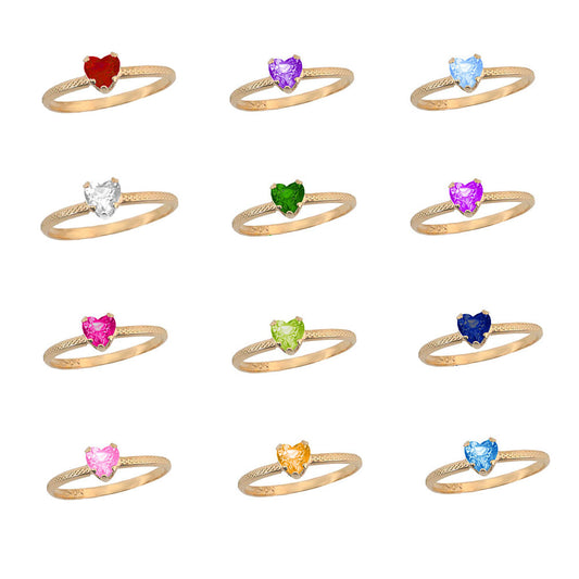 10K Yellow Gold Heart Birthstone Ring For Toddlers And Children (size 3 1/2)