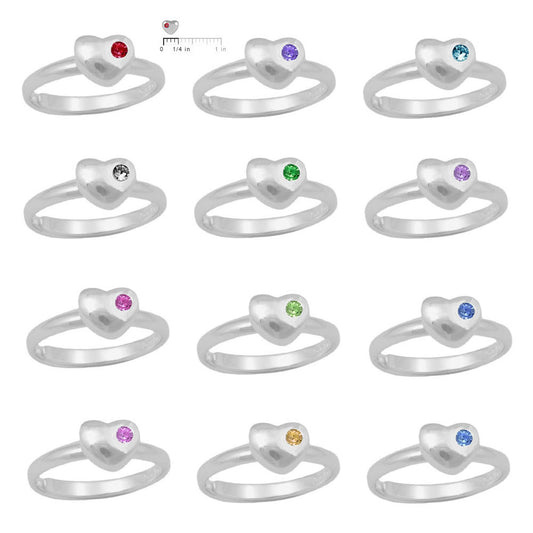Sterling Silver Simulated Birthstone Heart Ring Adjustable Size 3 To 7 For Girls