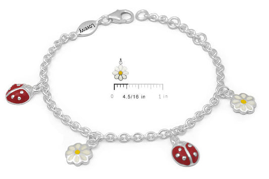 Children & Tween Girls Silver Ladybug & Daisy Flower Charm Bracelet (5 1/2-6 1/2 in)