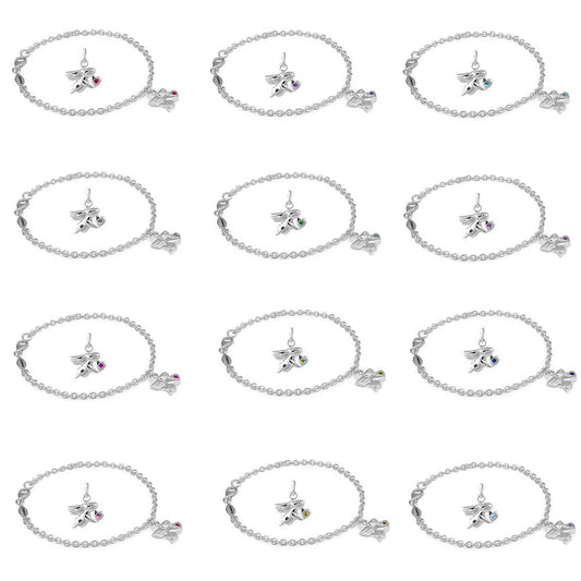 Girls Sterling Silver Birthstone Angel Charm Adjustable Bracelet