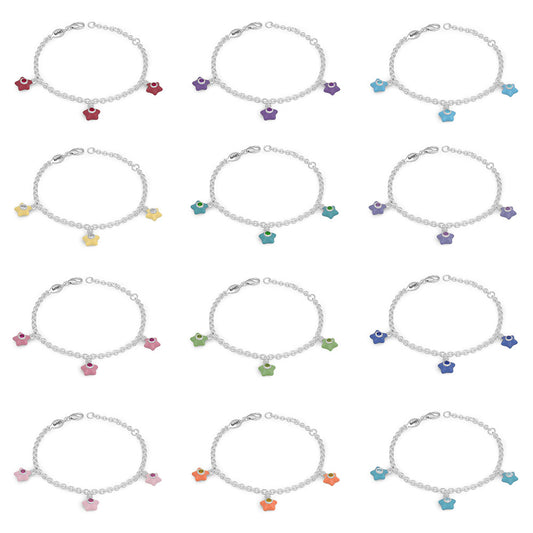 Sterling Silver Girls Birthstone Enamel Star Charm Bracelet (5 1/2-6 1/2 In)