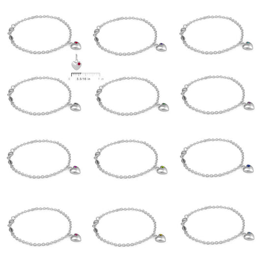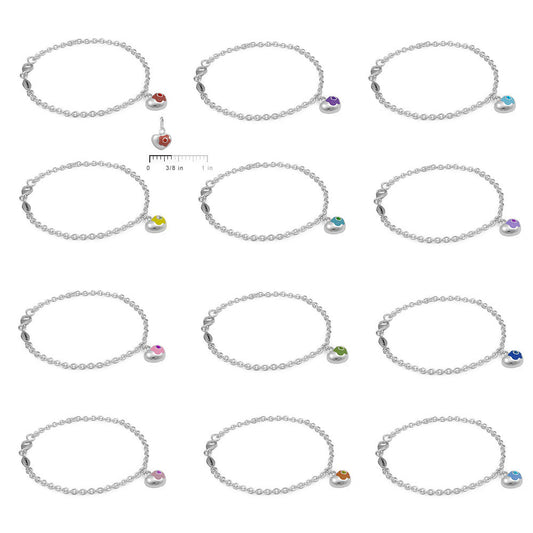 Girls Sterling Silver Simulated Birthstone Heart Charm Bracelet (5 1/2 or 6 1/2 In)