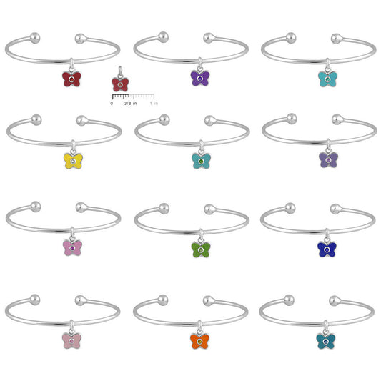 Sterling Silver Birthstone Enamel Butterfly Charm Torque Bangle For Girls