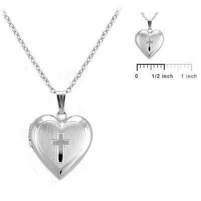 Girl's Sterling Silver Heart Shaped Engraved Cross Locket Necklace (15 in)