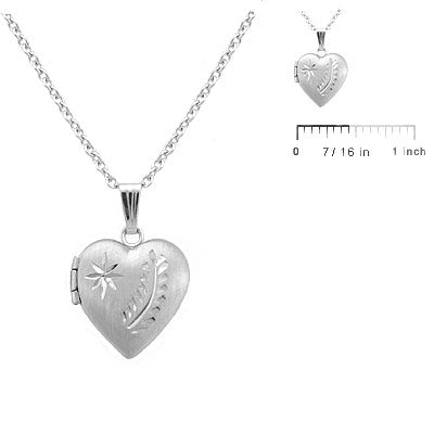 Girl's 15 In Silver Engraved Star and Fern Leaf Heart Locket Necklace