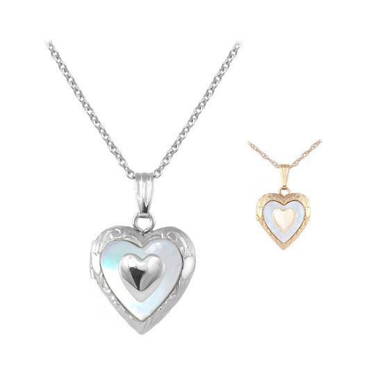 Children Gold Or Silver Mother of Pearl Heart Locket Necklace For Girls (15 in)