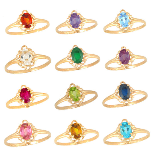 Girl 14K Yellow Gold Oval Shape Genuine Birthstone Ring (size 5 1/2)