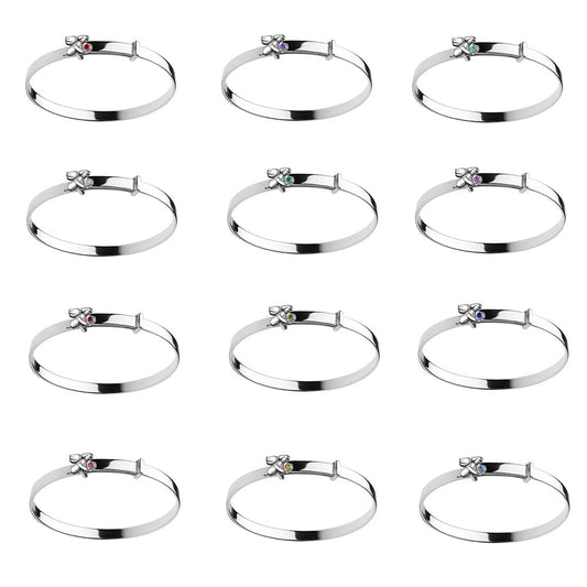 Children Sterling Silver Adjustable Birthstone Angel Bangle Bracelet