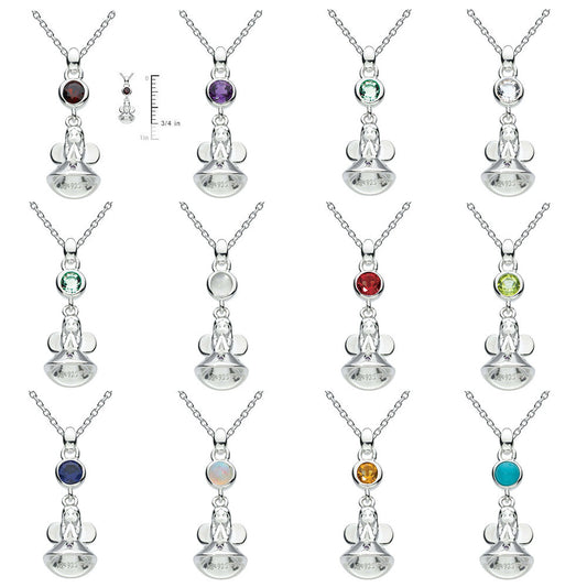 Little Girl Silver Fairy Godmother Simulated 12-Month Birthstone Necklace (12-14 in)