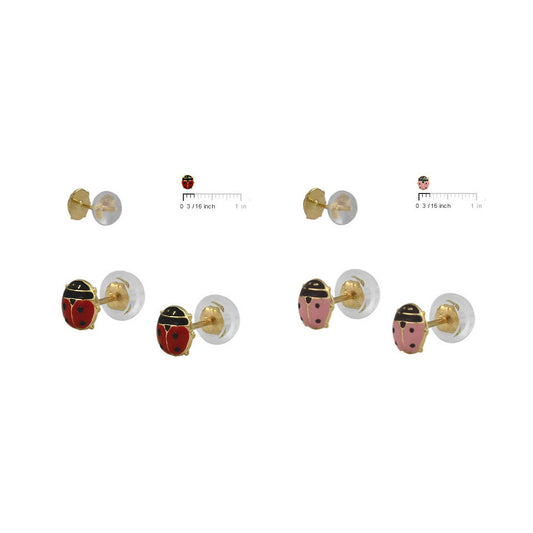 Baby & Toddler 14K Yellow Gold Pink/Red Ladybug Silicone Back Earrings