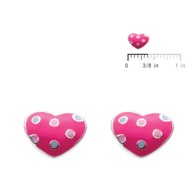 Girl Jewelry - Sterling Silver Fuschia And Polka Dot Heart Earring Studs