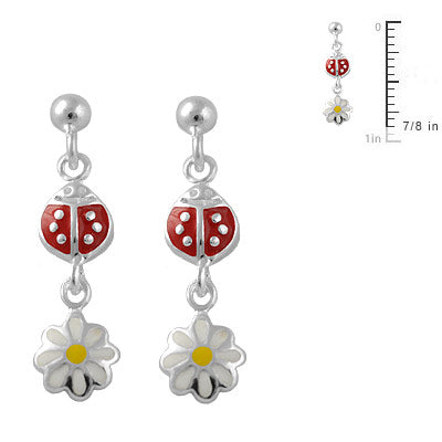 Sterling Silver Ladybug And Daisy Flower Dangling Earrings For Girls