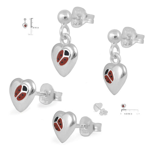Sterling Silver Red Enamel Ladybug Heart Stud Or Dangling Earrings For Girls