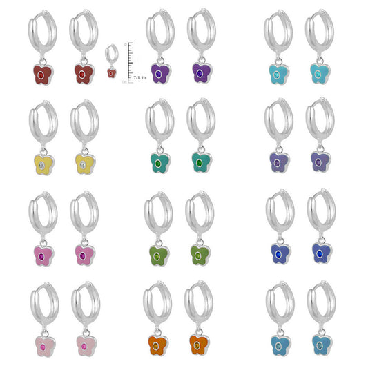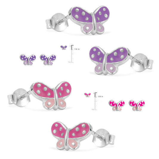 Girl's Jewelry - Sterling Silver Purple Or Pink Enameled Butterfly Earrings