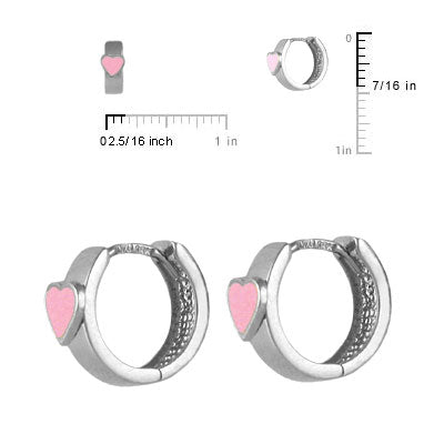 Girl Jewelry - Sterling Silver Pink Enamel Heart Huggie Hoop Earrings