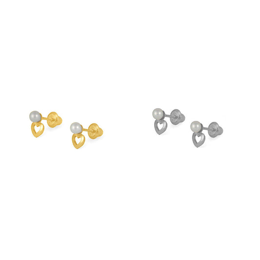 Kids 14K Yellow/White Gold Open Heart Pearl Screw Back Earrings