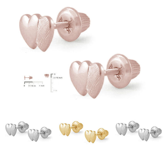 Girl Jewelry - Gold Or Silver Double Hearts Screw Back Stud Earrings