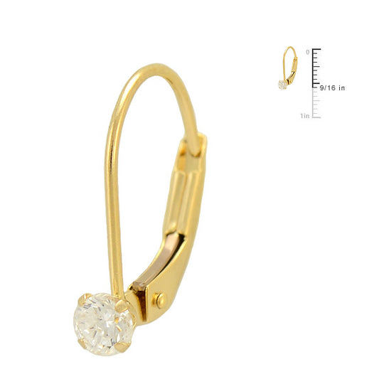 Kid & Teen Jewelry - 14K Yellow Gold Round CZ Leverback Girls Earrings