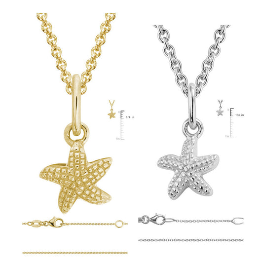 Kids 14K Yellow Gold/Sterling Silver Starfish Pendant Necklace For Girls (14, 15 in)