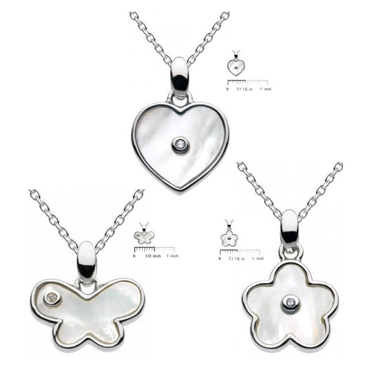 Girls Silver Mother of Pearl Diamond Flower/Heart/Butterfly Necklace (16-18 in)