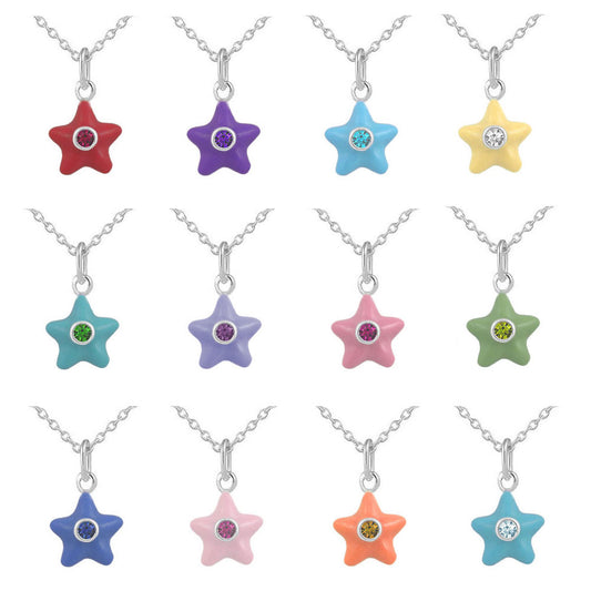 Sterling Silver Girl's Birthstone Enamel Star Pendant Necklace (12-18 In)