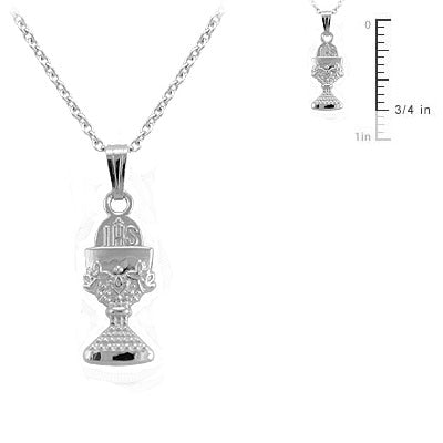 Girl's 15 In Sterling Silver Floral Engraved Chalice Pendant Necklace