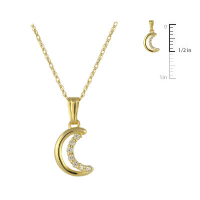 Children 14K Yellow Gold Moon Pendant Necklace For Girls (15 inches)