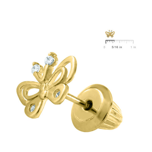 Girls Jewelry - 14K Yellow Gold Butterfly White CZ Screw Back Earrings