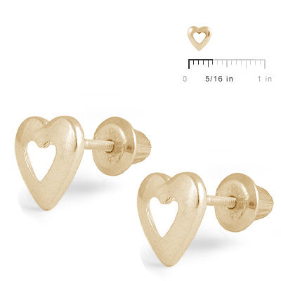 Girls Jewelry - 14K Yellow Gold Open Heart Screw Back Stud Earrings