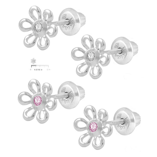Children And Teens Sterling Silver Diamond Or Pink C.Z. Daisy Screw Back Earrings