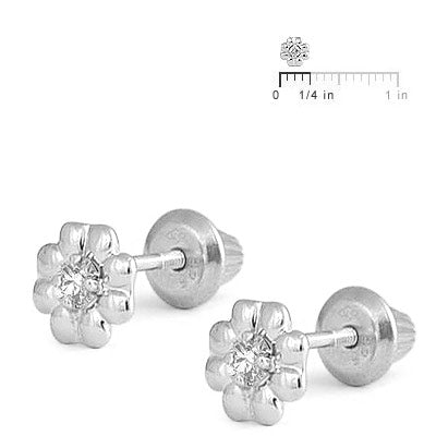 Sterling Silver Diamond Flower Screw Back Stud Earrings For Girls
