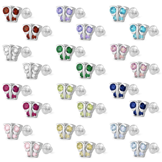 Girl's Sterling Silver Butterfly Birthstone Screw Back Stud Earrings