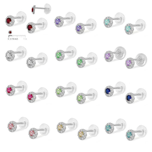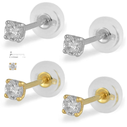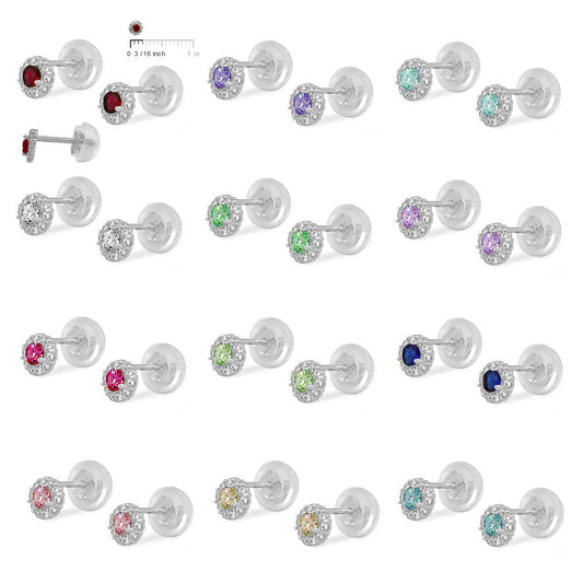 14K White Gold 4mm Birthstone Silicone Back Girl Stud Earrings