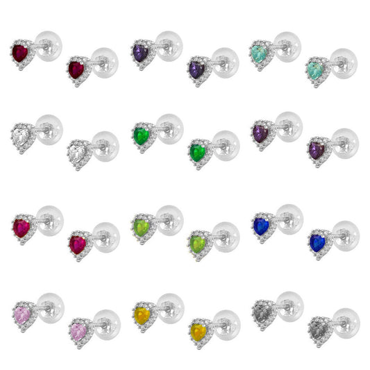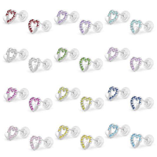 Little Girls 14K White Gold Birthstone Silicone Back Heart Shaped Earrings