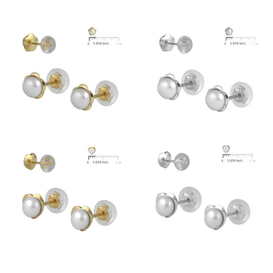 Girls 14K Yellow/White Gold Cultured Pearl Heart/Flower Shaped Silicone Back Earrings