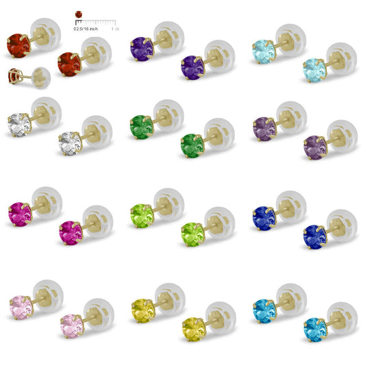 14K Yellow Gold 4mm Birthstone Silicone Back Earrings For Girls
