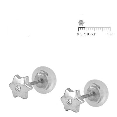 Baby And Toddler 14K White Gold Diamond Star Silicone Back Earrings