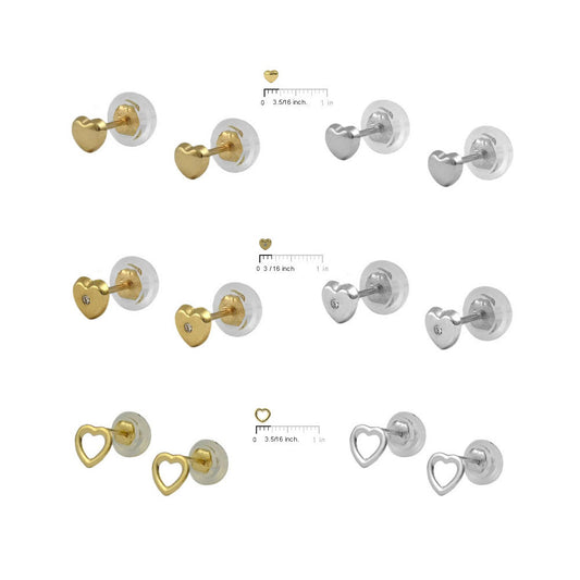 Baby And Toddler Jewelry - 14K Yellow and White Gold Heart Shaped Silicone Back Earrings
